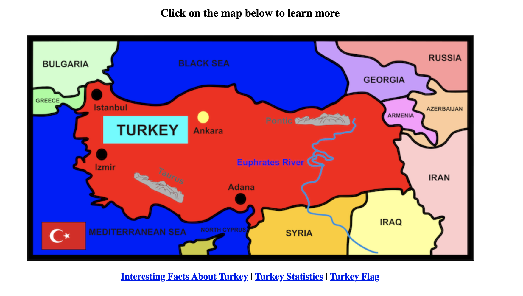 This is an interactive map of Turkey. Students simply click on the points of the map to learn all about Turkey